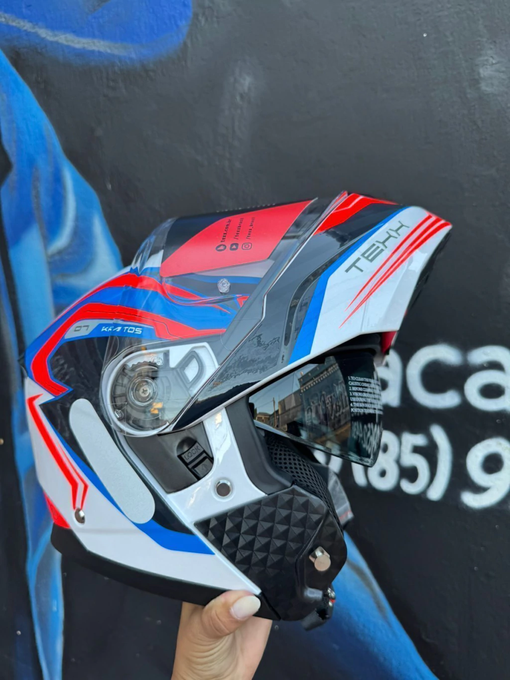 CAPACETE TEXX ESCAMOTEAVEL KRATOS NOMADE BRANCO AZUL VERMELHO