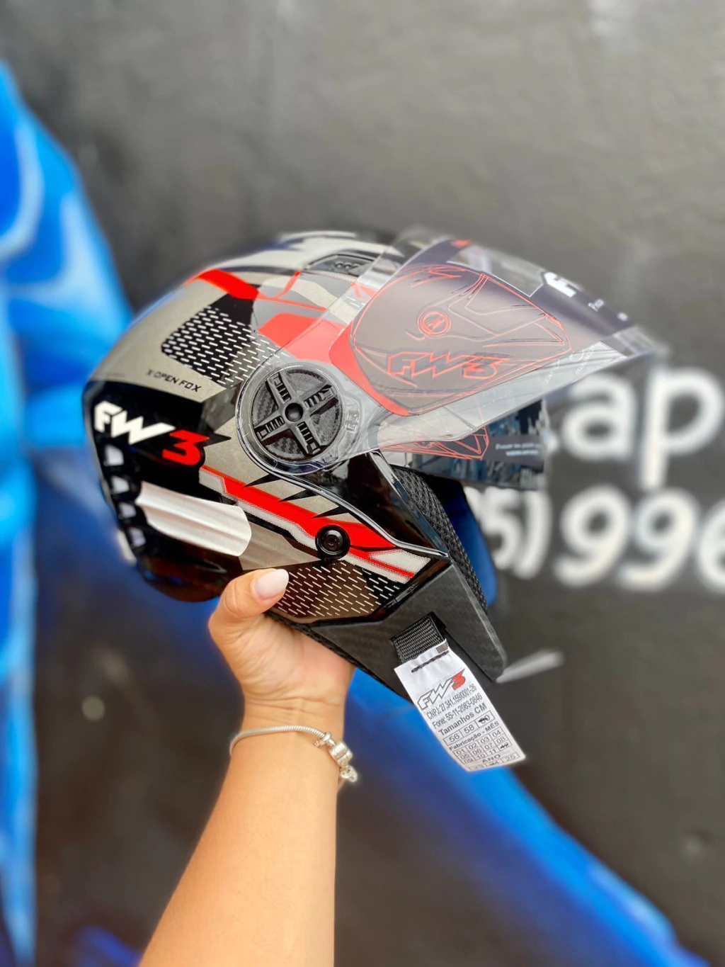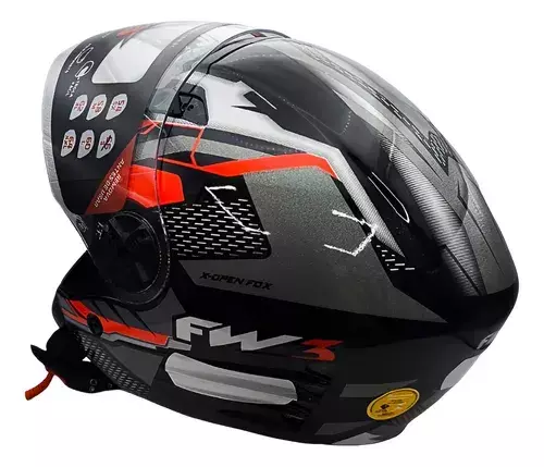 - Capacete FW3 X Open Up Fox Grafite/Vermelho Com Óculos